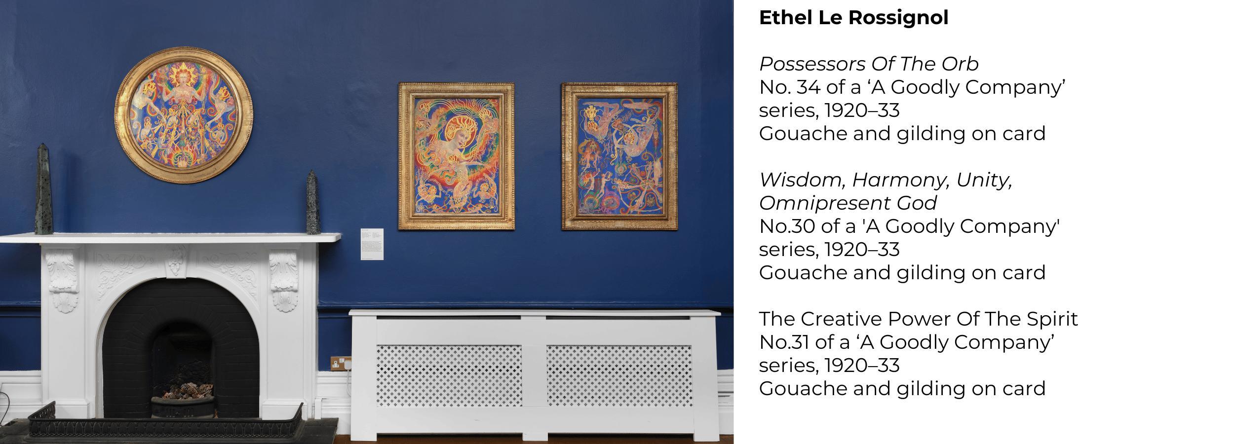 The exhibition included newly acquired works by Ithell Colquhoun, Aleksandra Ionowa, Sidney Manley, Ethel Le Rossignol, Anna Mary Howitt Watts and others alongside the first UK presentation of American visionary artist Paulina Peavy. These are shown in dialogue with works by contemporary artists including Sandra Vásquez de la Horra, Chantal Powell and Samir Mahmood, engaging with themes of spirit communication, ancestral memory, and the energetic connection between the body, Earth, and unseen realms.